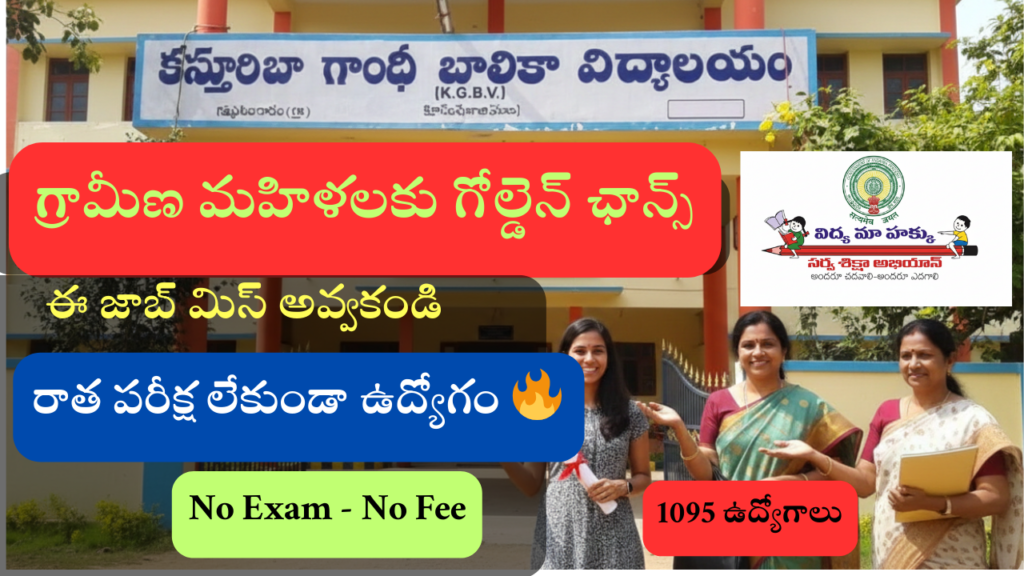 KGBV Recruitment 2026 మహిళల కోసం వచ్చిన ఒక ముఖ్యమైన మరియు అరుదైన ఉద్యోగావకాశంగా చెప్పుకోవచ్చు. ఆంధ్రప్రదేశ్ ప్రభుత్వం సమగ్ర శిక్ష (Samagra Shiksha) శాఖ ఆధ్వర్యంలో పనిచేస్తున్న కస్తూర్బా గాంధీ బాలిక విద్యాలయాలు (KGBVs) లో మొత్తం 1095 Non-Teaching పోస్టుల భర్తీకి అధికారిక నోటిఫికేషన్ విడుదలైంది. గ్రామీణ మరియు వెనుకబడిన ప్రాంతాల్లో నివసించే మహిళలకు ఈ నియామకం ఒక మంచి అవకాశంగా నిలుస్తోంది.